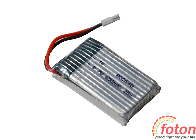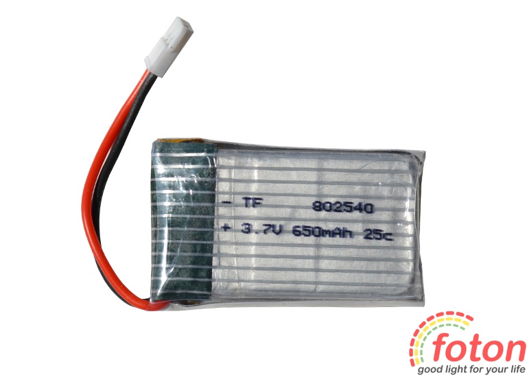 Акумулятор літій-полімерний 3,7V 650mAh призначений для живлення квадрокоптерів (дронів), що працюють від 3,7 В. Акумулятор має двоконтактний конектор для підключення. Термін експлуатації акумулятора досягає 70 циклів перезаряджання.
