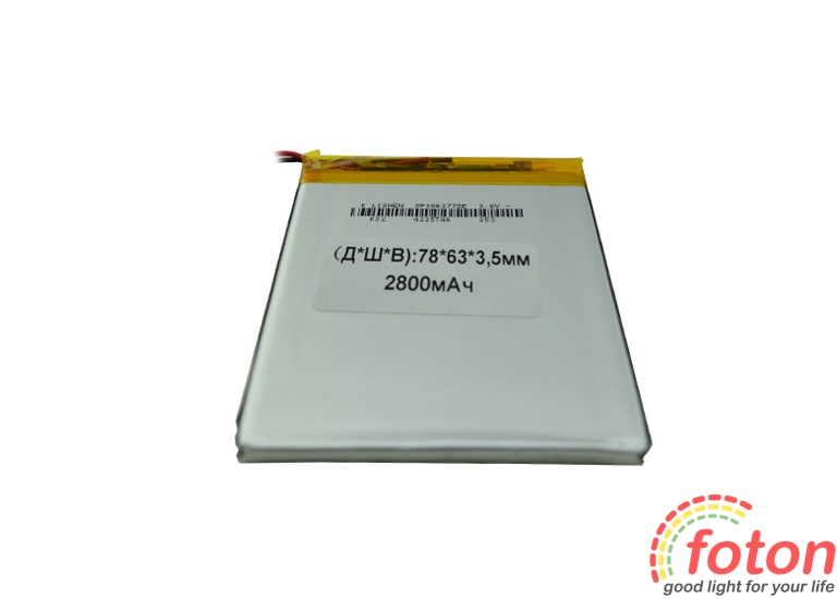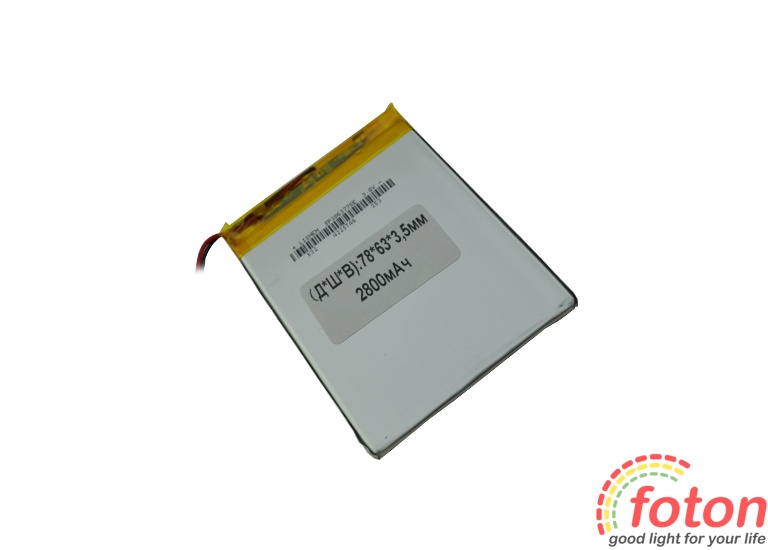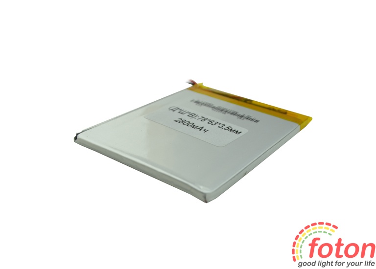 Акумулятор літій-полімерний 3,7V 2800mAh призначений для живлення пристроїв, що працюють від 3,7 В. Акумулятор може заряджатися від стандартних побутових зарядних пристроїв для Li-Pol акумуляторів.