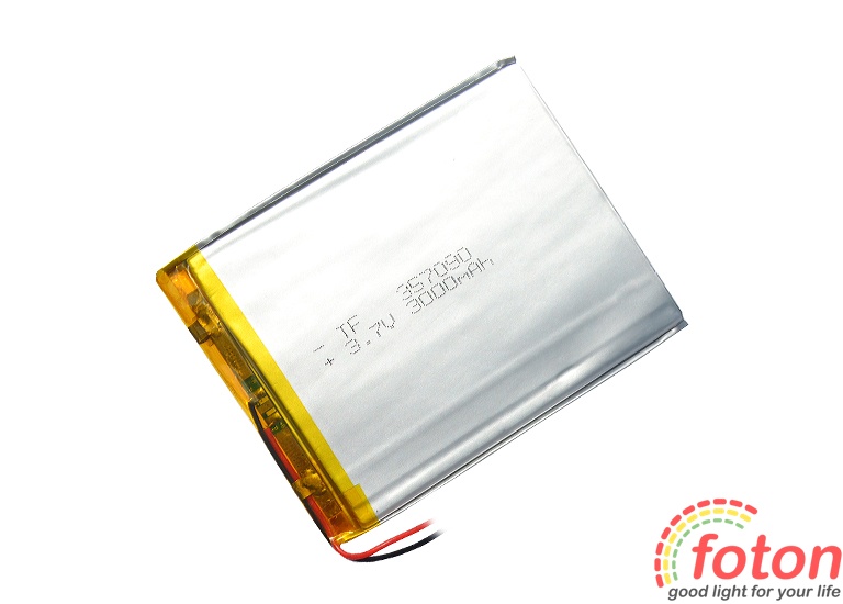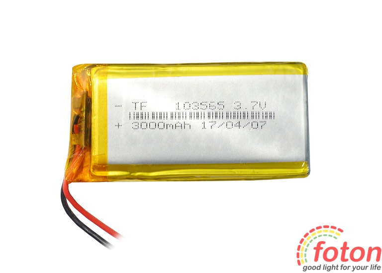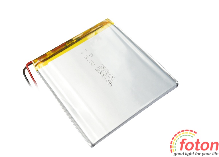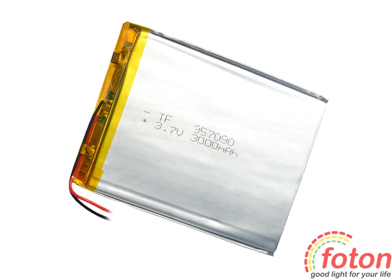 Акумулятор літій-полімерний 3,7V 3000mAh призначений для живлення пристроїв, що працюють від 3,7 В. Акумулятор може заряджатися від стандартних побутових зарядних пристроїв для Li-Pol акумуляторів.