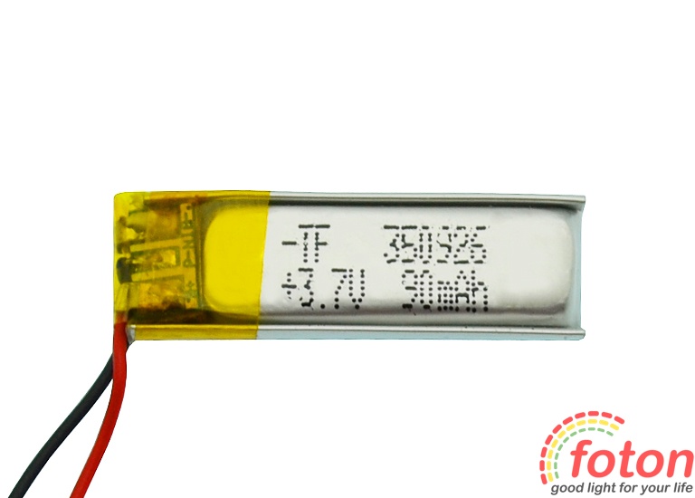 Акумулятор літій-полімерний 3,7V 90mAh призначений для живлення пристроїв, що працюють від 3,7 В. Акумулятор може заряджатися від стандартних побутових зарядних пристроїв для Li-Pol акумуляторів.