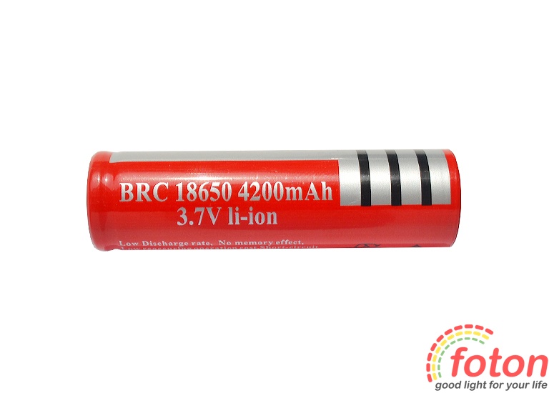 Акумулятор Li-ion BRC 18650, 3,7В, ємністю 4200 мАг. Ця акумуляторна батарея призначена для забезпечення працездатності портативних пристроїв. Акумулятор із типорозміром 18650 дає можливість застосовувати його у ліхтариках та іншій техніці, де використовуються акумулятори такого типу.