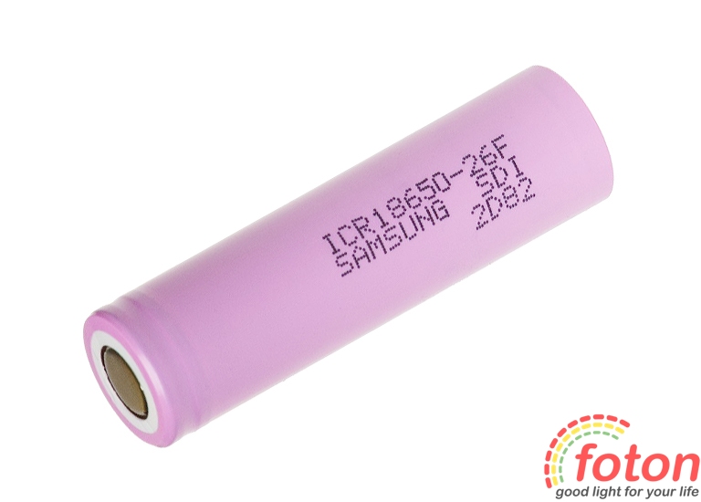 Акумулятор Li-ion Samsung 18650, 3,7В, ємністю 2600 мАг. Ця акумуляторна батарея призначена для використання у ліхтариках, електронних сигаретах, портативних шуруповертах, дрилях, модах та інших пристроях. Вона має плату захисту, тому захищає акумулятор від: