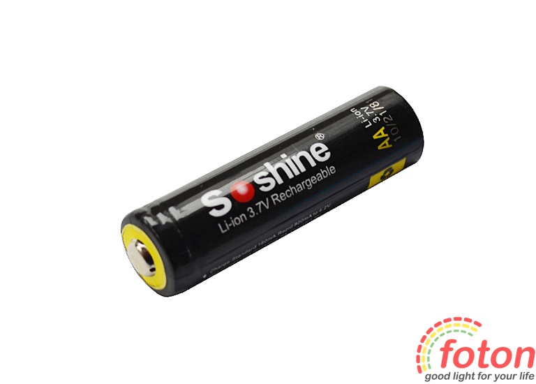 Літій-іонний акумулятор Soshine з типорозміром 14500, має ємність 800мАч та номінальну напругу 3,7В. Акумулятор обладнаний платою захисту від перерозряджання, перезаряджання, неправильної полярності. Плата захисту забезпечує безпеку використання акумулятора в побутових цілях.
