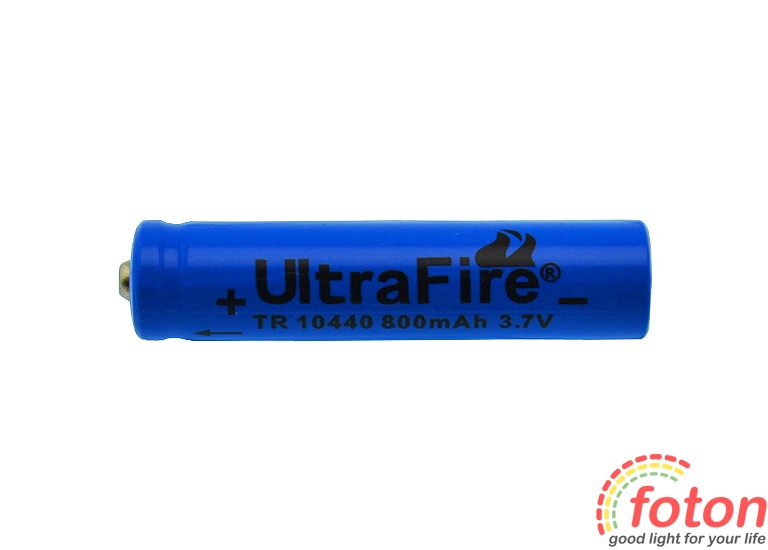 Акумулятор літій-іонний UltraFire 10440, 3,7V, ємністю 800 мАг. Ця акумуляторна батарея призначена для забезпечення працездатності портативних пристроїв. Акумулятор із типорозміром 10440 дає можливість застосовувати його у ліхтариках, фототехніці, аудіотехніці та іншій електронній техніці, де використовуються акумулятори типу 10440 або ААА.