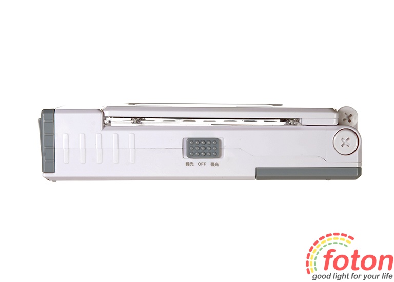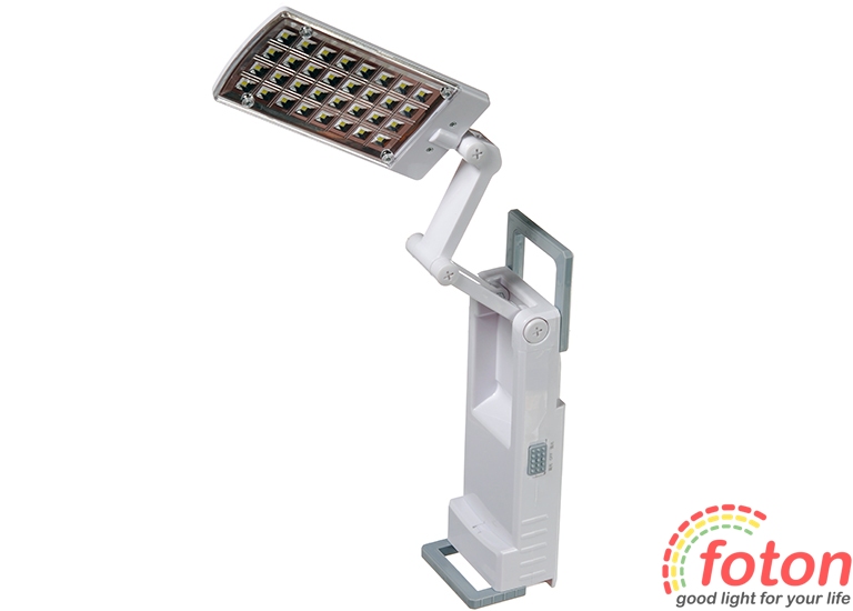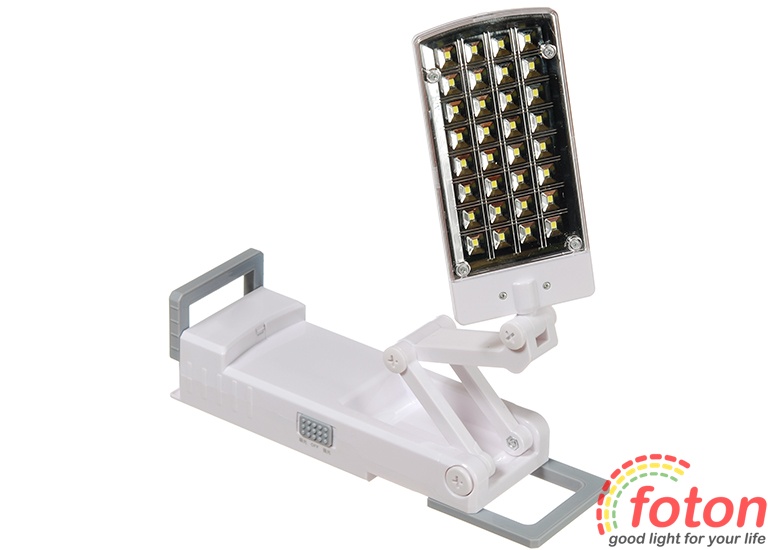 Настільна лампа з вбудованим акумулятором та зарядним пристроєм. Світильник незамінний у домашньому господарстві, на дачі, на риболовлі, під час відпочинку на природі, а також там, де відбуваються часті перебої з електроенергією. Корпус світильника складається з 4 рухомих сегментів для досягнення максимальної ефективності освітлення та зручності використання. Також на світильнику встановлені додаткові висувні підставки та гачок, що дозволить встановити або підвісити лампу в будь-якому положенні.