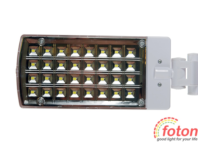 У світильнику встановлено 32 світлодіоди SMD2835. Є два режими роботи: максимальний та економний. Час безперервної роботи при повній зарядці акумулятора понад 4 години при максимальній яскравості та більше 8 в економічному режимі.