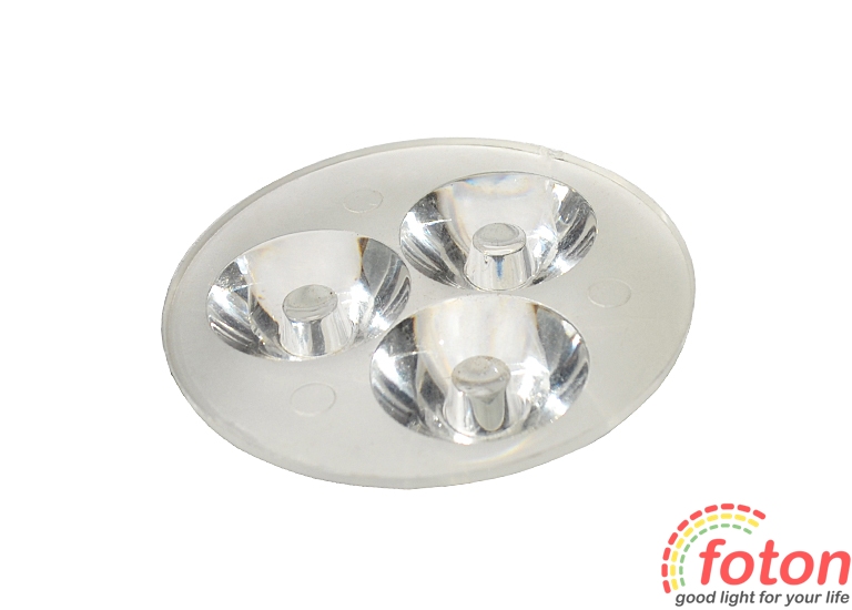 Оптика для групи із 3-х світлодіодів 1-5Вт. Гладка прозора поверхня. Кут свічення 30°.