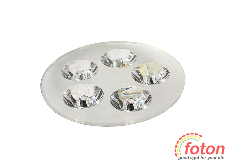 Оптика для групи із 5-х світлодіодів 1-5Вт. Гладка прозора поверхня. Кут свічення 45°.