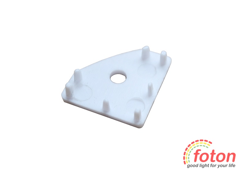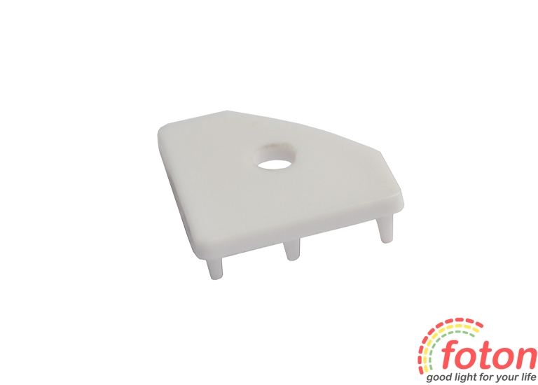 Виконані із міцного ударостійкого пластику. Конструкція торцевих заглушок дозволяє використовувати їх як фіксатор розсіювача світла. Заглушки тримаються у профілі на тугій посадці та легко виймаються з нього під час профілактики або ремонту освітлення. Для подачі дроту живлення служить заглушка з отвором.