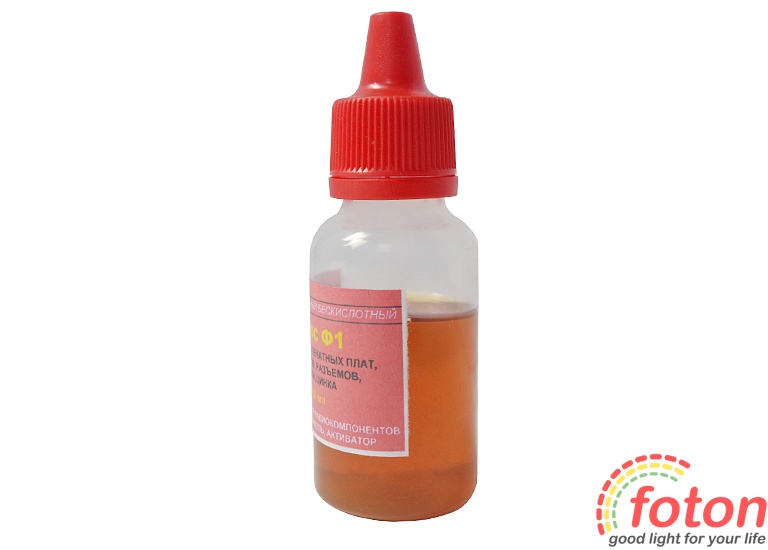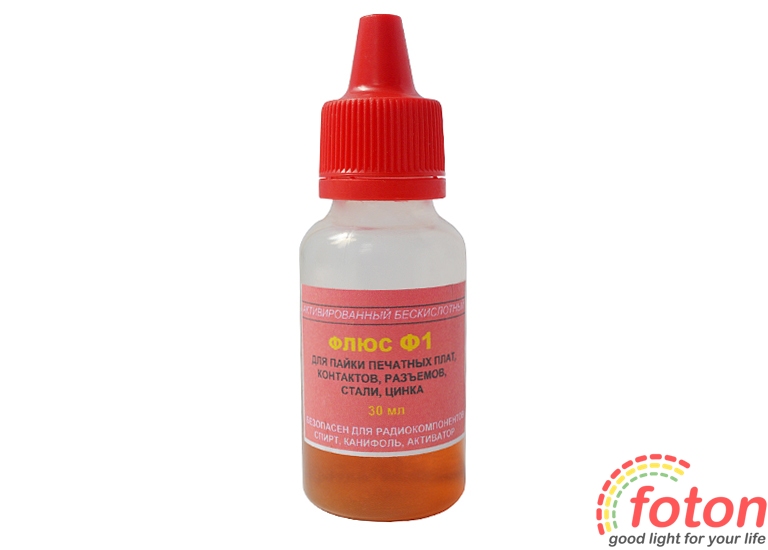 Флюс паяльний Ф-1 є універсальним витратним матеріалом, який використовується для паяння друкованих плат, роз'ємів, контактів, сталі, цинку. Він має активовані без кислотні властивості. Дані добавки набувають чинності в процесі паяння.