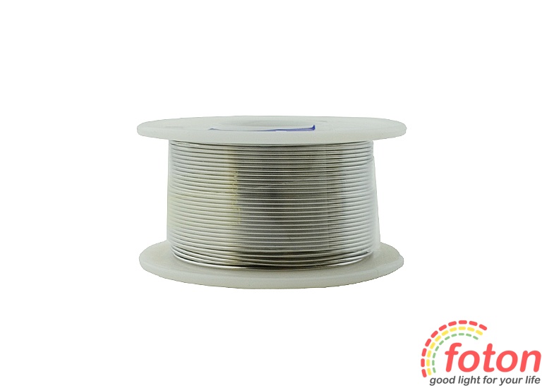 Припій у котушці. Діаметр дроту 0,8 мм. Вага 50 г. Температура плавлення 185-230 ° C.
