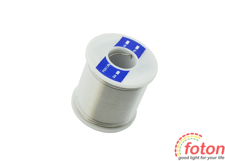 Припій у котушці. Діаметр дроту 0,8 мм. Вага 500 грам. Температура плавлення 185-230 ° C.