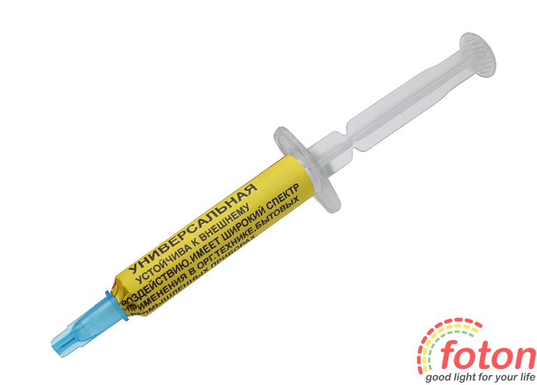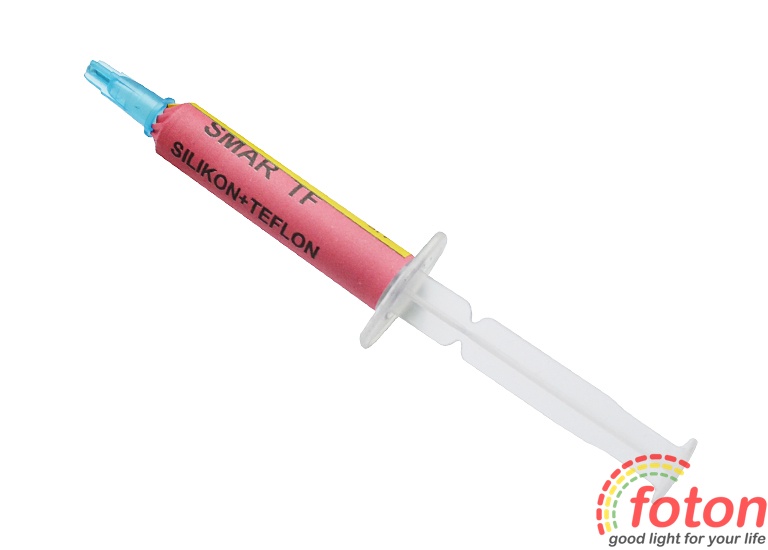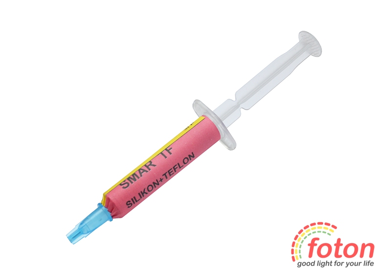 Універсальне силіконове тефлонове мастило Smar TF поставляється в шприці вагою 3 грами. Застосовується для мастила та захисту від впливу зовнішніх атмосферних факторів, вплив водних розчинів кислот. Захищає зовнішні гумові та пластикові покриття. Має високу хімічну стійкість до окиснення, лугів, солей, діоксиду сірки, аміаку. Використовується в температурному режимі від -40°С до +260°С.