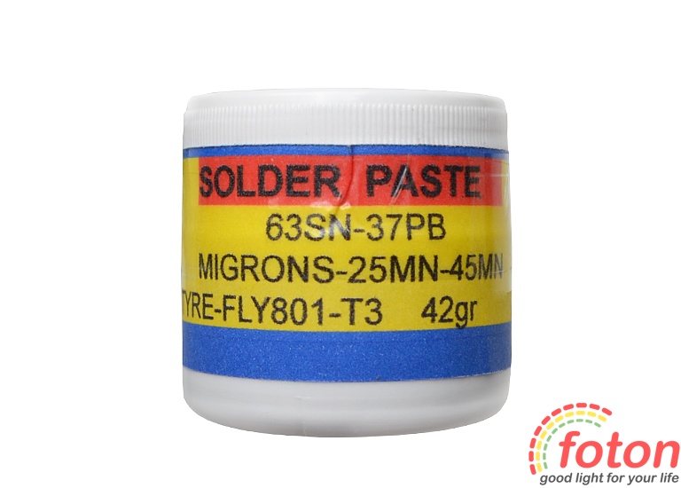 Паяльна паста з припоєм FLY801-T3 призначена для паяння друкованих плат, мікросхем, smd компонентів.
