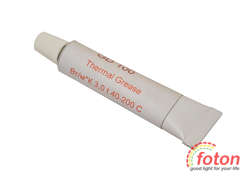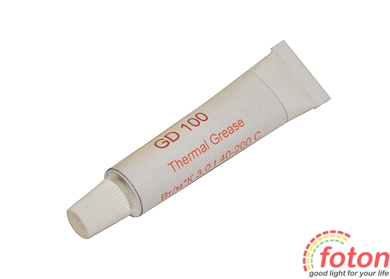 Термопаста GD 100 є пастою з високою теплопровідністю, яка становить 3,0 Вт/м*К при температурі від 40°C до 200°C. Дана паста застосовується між радіатором (що забезпечує тепловідведення) та пристроєм, від якого йде тепловий потік в результаті роботи. Наприклад, між радіатором і світлодіодом, або між радіатором і процесором.