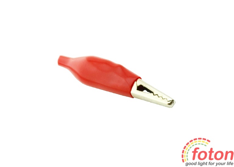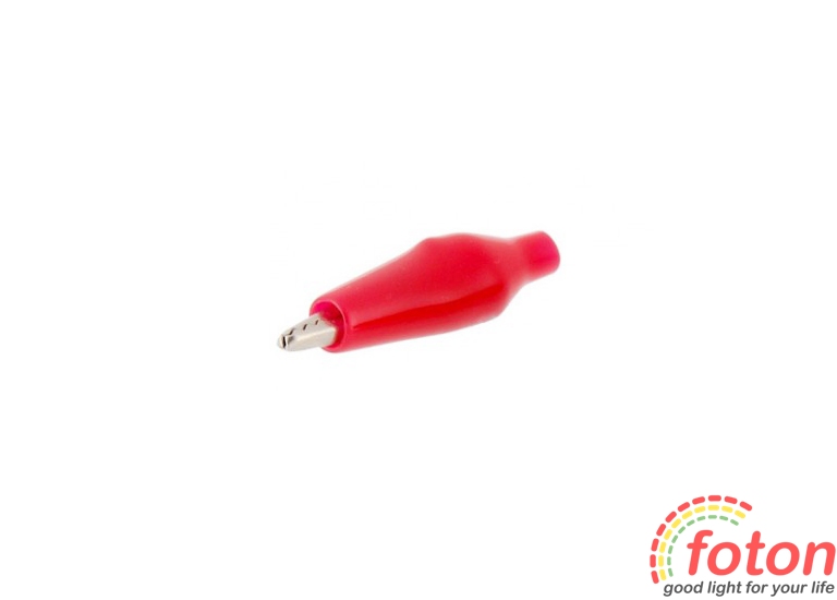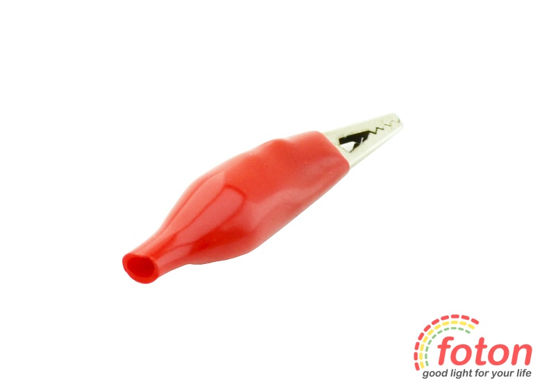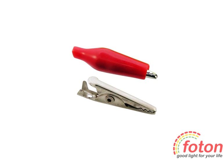 Затискач "крокодил" 5А 26мм є електромеханічним пристроєм, призначеним для оперативного з'єднання або роз'єднання контакту проводів при виконанні вимірювальних робіт або монтажу електричних і слаботочних мереж. Затискач отримав свою назву за схожість із щелепами крокодила. Складається він із двох фігурних деталей із «крокодильї» зубцями, скріплених серединами спеціальним штифтом і здатних повертатися на деякий кут навколо осі з'єднання. До однієї з деталей монтується контактний провід. Стиснення «щелеп» забезпечується пружиною, вставленою з іншого боку штифта. З метою безпечної експлуатації затиску, ізоляція, виготовлена ??з ПВХ, виключить випадкове контактування з іншими струмонесущими частинами та запобігає ураженню електричним струмом.