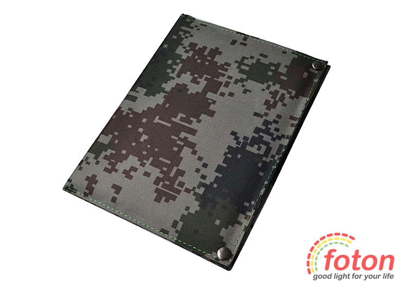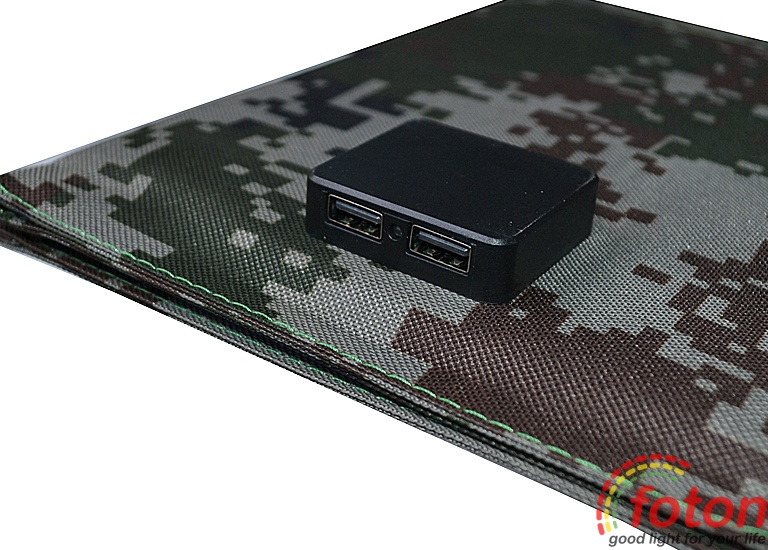 Портативна сонячна панель виконана в чохлі захисного камуфляжного кольору із засувками. Для забезпечення працездатності її необхідно розгорнути та встановити на відкритій місцевості або у зоні світіння сонячних променів. Індикатор червоного кольору світіння, що розташований біля USB роз'ємів, інформує про процес поглинання сонячних променів даною панеллю. Для заряду пристроїв застосовується кабель USB з трьома роз'ємами: micro USB, Type-C, Lightning.