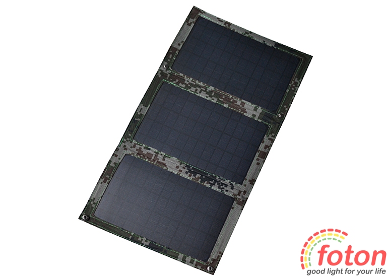 Ці складні сонячні батареї мають ламіновані сонцепоглинаючі клітини, які виготовлені з поліефірного кремнію. Такий матеріал забезпечує використання сонячних панелей тривалий час та забезпечує захист від бруду, пилу чи дощу. Два отвори у верхній частині панелі застосовуються кріплення до рюкзака, сумки або намет.