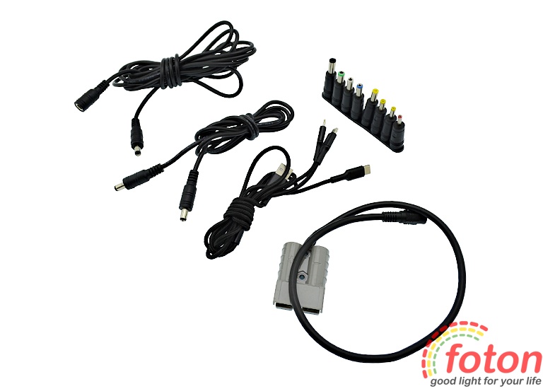 | Комплектація: | - сонячна панель - 1 шт; - кабель Power jack 5,5mm Father/Mother - 1 шт; - кабель Power jack 5,5mm Father/Father - 1 шт; - набір роз'ємів Power jack - 1 шт; - кабель з роз'ємом Андерсона; - USB кабель 3 в 1-1 шт. |