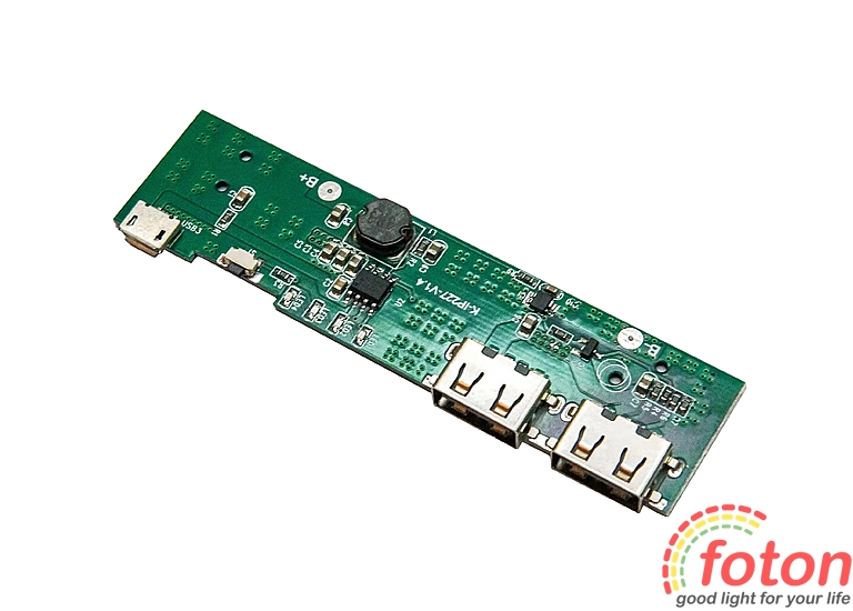 Спеціалізована плата для портативного зарядного пристрою Power Bank має робочу напругу 5В. З її допомогою можна виготовити повноцінний зарядний пристрій, використовуючи акумуляторні батареї.