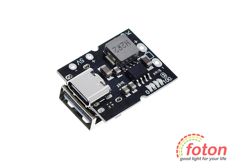 Цей модуль може забезпечити вхідну напругу від 5 до 5,5В і при цьому зарядний струм 2,4А. Вихідна напруга в межах від 5 до 5,15 і вихідний струм 2А.