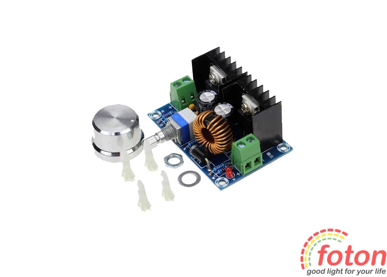 Стабілізатор напруги DC-DC XH-M402 (XL4016) (1,5-36V) 8A призначений для зниження напруги шляхом регулювання резистором, що підлаштовується, в межах від 1,25 до 36В.