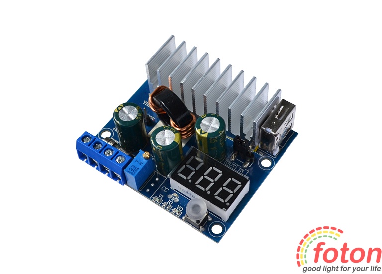 Підвищуючий стабілізатор представлений у формі прямокутної плати без корпусу. Підключення здійснюється за допомогою гвинтових клем. Також є додатковий вихідний роз'єм USB, вихідна напруга якого відповідає вихідній напрузі з клемною колодки. (Уважно!!! Роз'єм USB не має постійної вихідної напруги не 5В!!!!)