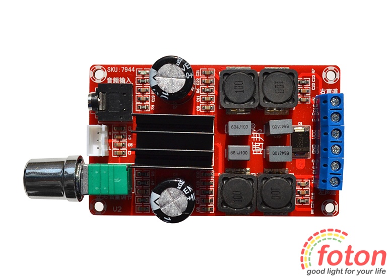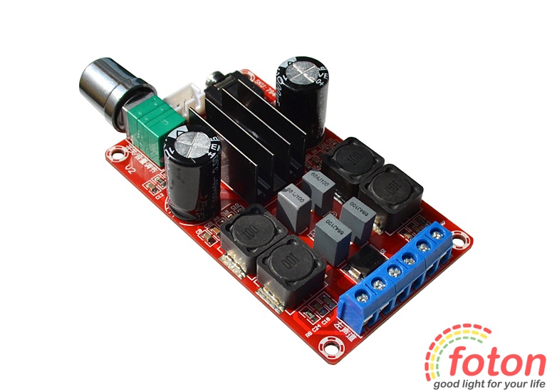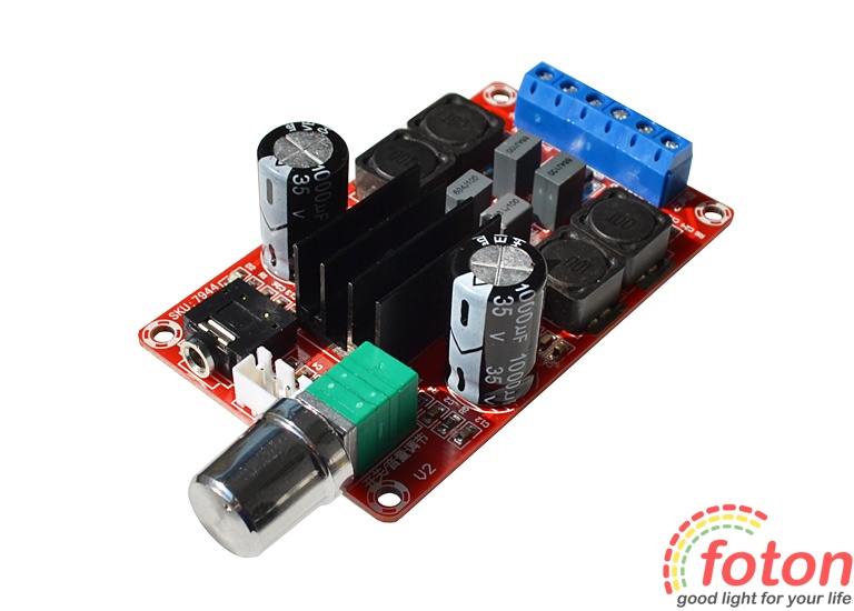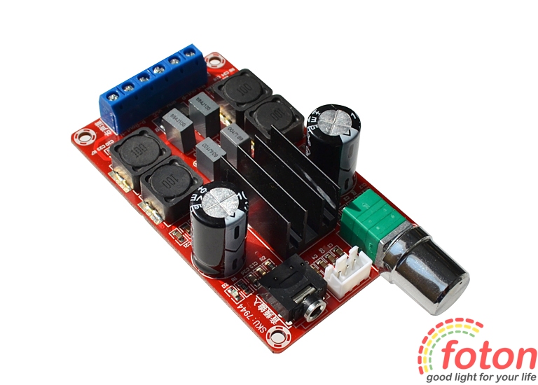 За допомогою цього підсилювача потужності можна здійснити підключення двох стерео колонок потужністю до 50 Вт. Плата підсилювача заснована на роботі високоякісного чіпа TPA3116D2, він оснащений чіткими звуками, високою ефективністю та потужністю.