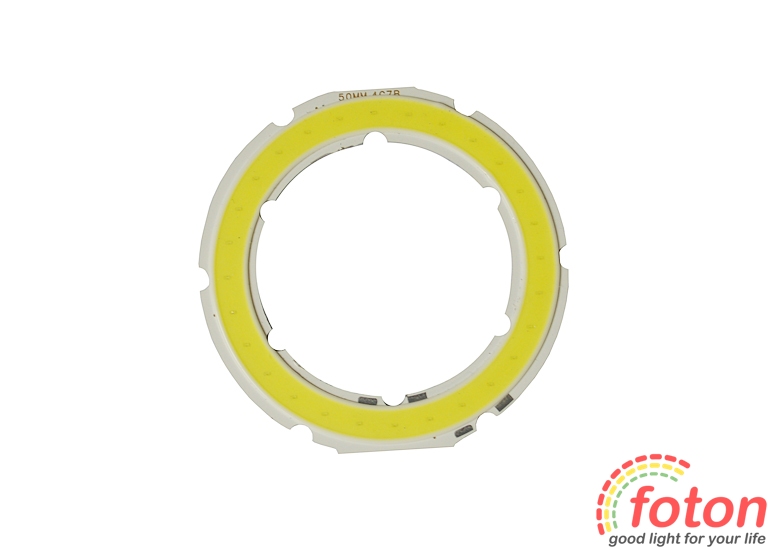 Світлодіодний модуль COB D50 LED 4C7B потужністю 5 Вт. Для підключення даного модуля не знадобиться стабілізоване джерело живлення, оскільки робоча напруга становить 12В.Дані модулі зроблені за новітніми технологіями складання світлодіодних модулів Chip On Board (переклад: «чіп на платі» або просто COB).