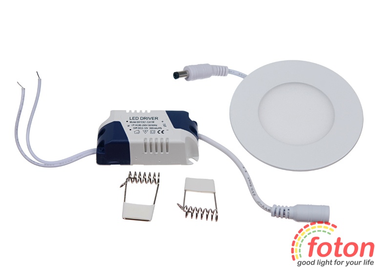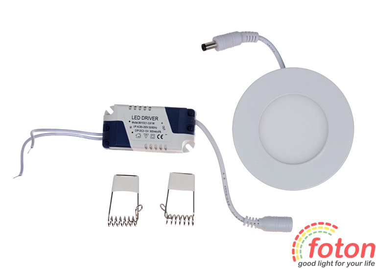Вбудований світлодіодний світильник Downlight LED Panel (Даунлайт) в алюмінієвому корпусі, потужністю 3Вт, робоча напруга 220В, розсіяне світіння. Аналог світильника на 20Вт. Ця модель призначена для організації основного освітлення у житлових, побутових, промислових та торгових приміщеннях.