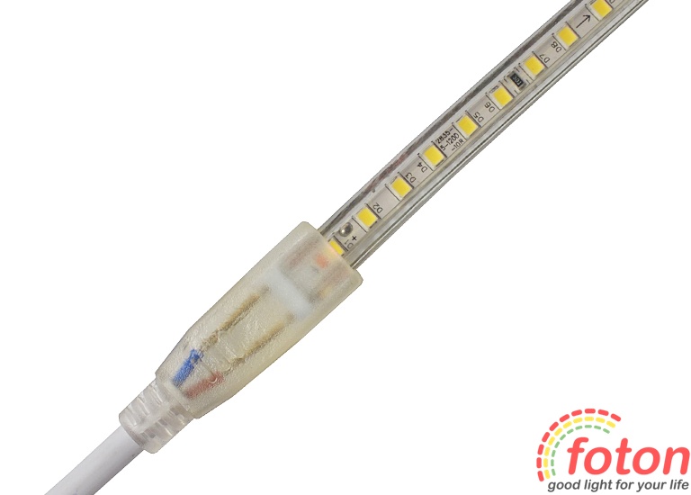 Світлодіодна стрічка має робочу напругу 220В при постійному струмі. Щоб забезпечити роботу та безбликове свічення до світлодіодної стрічки 220В застосовують кабель живлення з випрямлячем "діодний міст".