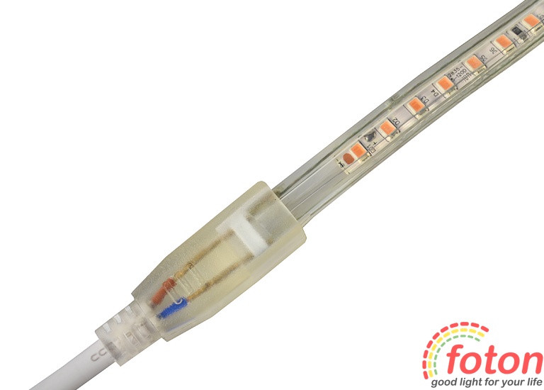 Світлодіодна стрічка має робочу напругу 220В при постійному струмі. Щоб забезпечити роботу та безбликове свічення до світлодіодної стрічки 220В застосовують кабель живлення з випрямлячем "діодний міст".
