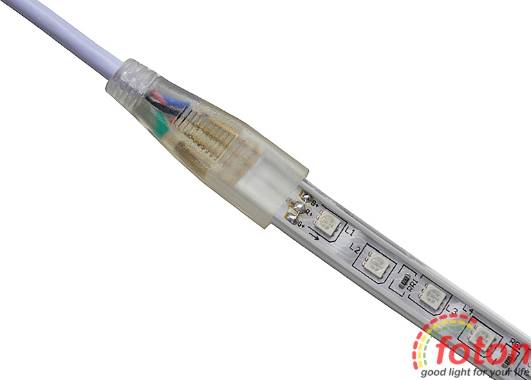 Силіконова оболонка led смуги дозволяє застосовувати її в місцях з підвищеною вологістю і запиленістю. Установка, при якій стрічка контактуватиме з водою – заборонена! Так як на підставі даної стрічки 220В відсутня клейка основа, монтаж здійснюють силіконовими кріпленнями. Стрічка SMD 5050 (60 led/m) IP68 RGB світіння поставляється в бобінах від 50 до 100 метрів. Продаж здійснюється кратно 1 метр.