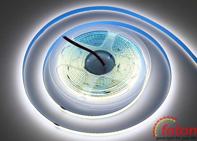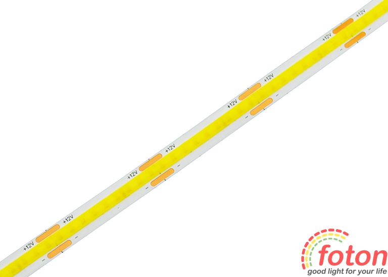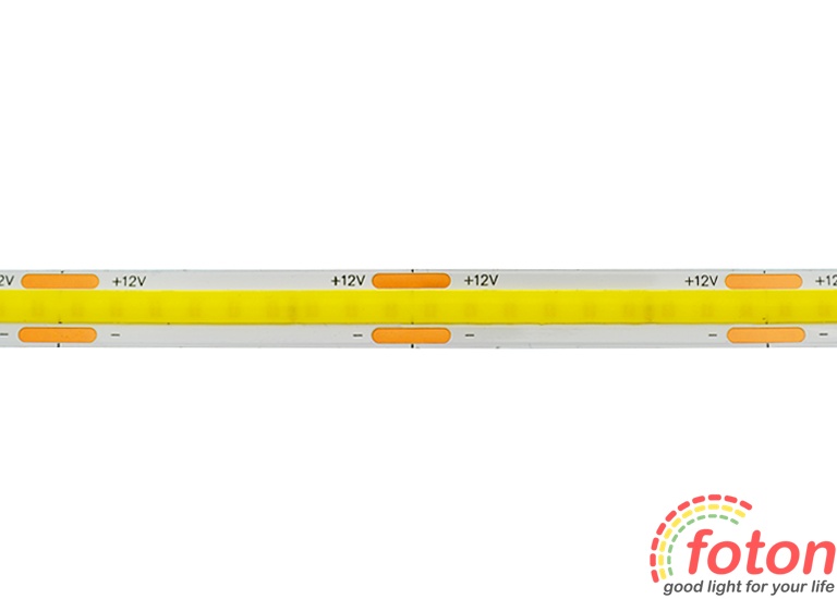 Світлодіодна стрічка COB (252 LED/m) IP20 призначена для організації додаткового освітлення в приміщеннях. Виготовлена ??за технологією COB (Chip On Board), має ефект "суцільного" світіння. Оснащена світловипромінюючими кристалами у кількості 252 шт на 1 метр. Кристали покриті захисним шаром люмінофора, але при цьому цю стрічку можна встановлювати тільки в сухих приміщеннях. Робоча напруга складає 12 вольт.