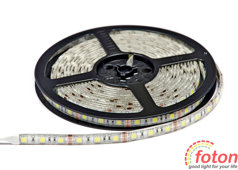 Світлодіодна стрічка надяскрава на світлодіодах SMD 5050, 60 світлодіодів на метр, біла підкладка, преміум серія, клас захисту IP54, який передбачає захист від вологи, тому дана стрічка підходить для установки всередині приміщень з підвищеною вологістю, але Світлодіодна стрічка 5050 найчастіше застосовується як основне освітлення.