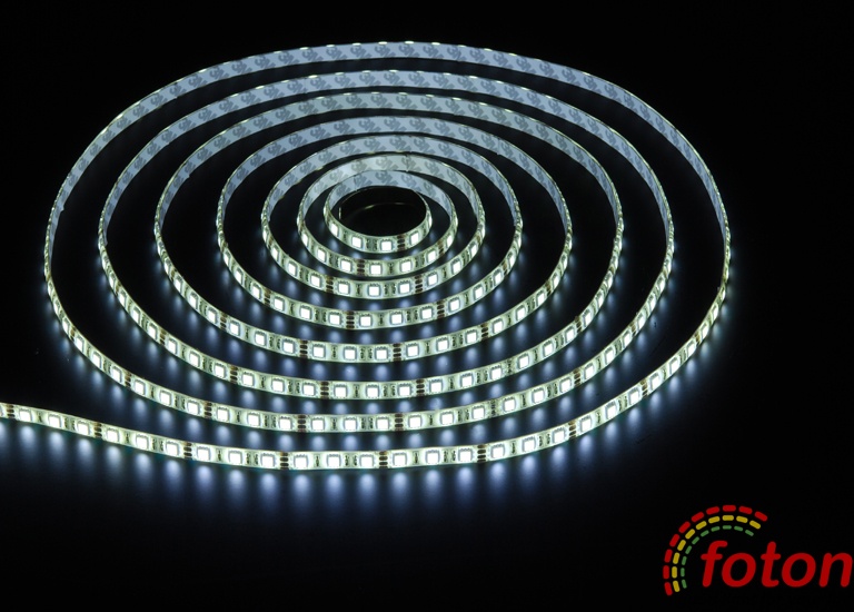 Світлодіодна стрічка надяскрава на світлодіодах SMD 5050, 60 світлодіодів на метр, біла підкладка, преміум серія, клас захисту IP54, який передбачає захист від вологи, тому дана стрічка підходить для установки всередині приміщень з підвищеною вологістю, але Світлодіодна стрічка 5050 найчастіше застосовується як основне освітлення.