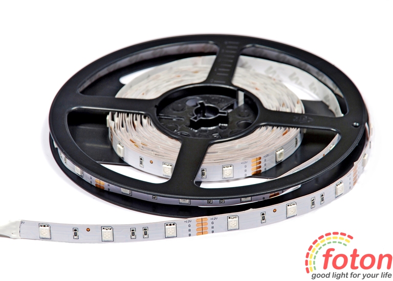 Світлодіодна стрічка rgb 5050 на світлодіодах SMD 5050, 30 світлодіодів на метр, біла підкладка, преміум серія, клас захисту IP20, який не передбачає захисту від вологи, тому дана стрічка підходить тільки для встановлення всередині приміщень. Світлодіодна стрічка RGB найчастіше застосовується як повнокольорове декоративне підсвічування.