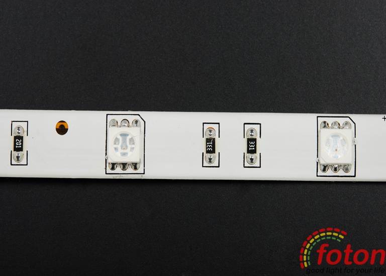 Світлодіодна стрічка RGB на світлодіодах SMD 5050, 30 світлодіодів на метр, біла підкладка, преміум серія, клас захисту IP54, який передбачає захист від вологи, тому дана стрічка підходить для встановлення всередині приміщень з підвищеною вологістю, але без прямого контакту з рідинами. href="/catalog/svetodiodnaya-lenta-rgb.html">Світлодіодна стрічка RGB найчастіше застосовується як повнокольорове декоративне підсвічування.