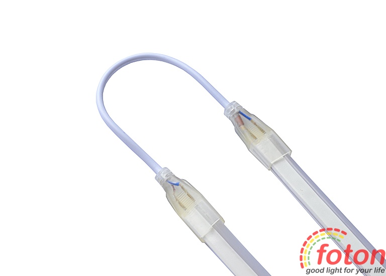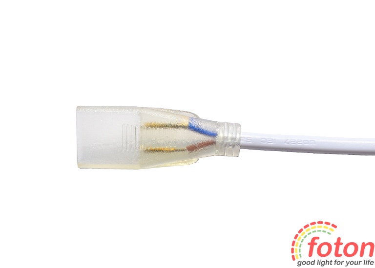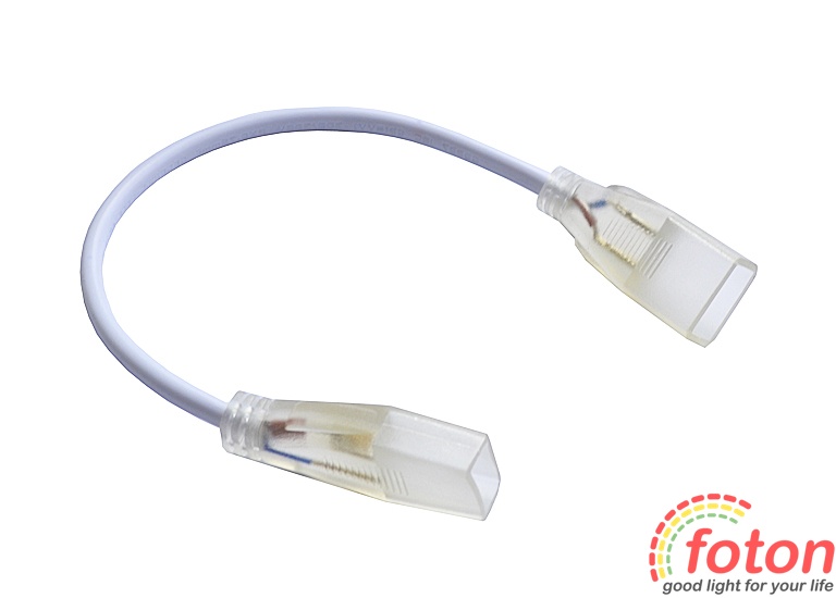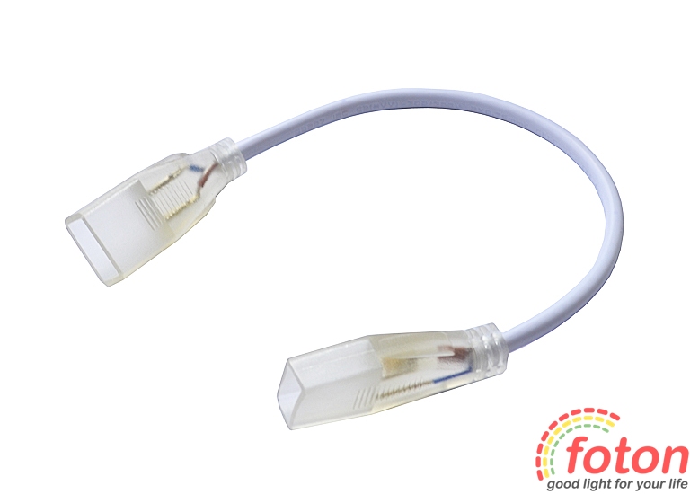 Сполучний кабель для світлодіодного неону 220В забезпечує надійний монтаж та подачу напруги. Цей кабель призначений для з'єднання ділянок led neon 220v. Необхідність даного пристосування полягає у зручності з'єднання неонової вивіски з безліччю елементів, що світяться. При підключенні необхідно спочатку підключити конектор вилочку, потім з'єднати з кабелем живлення.