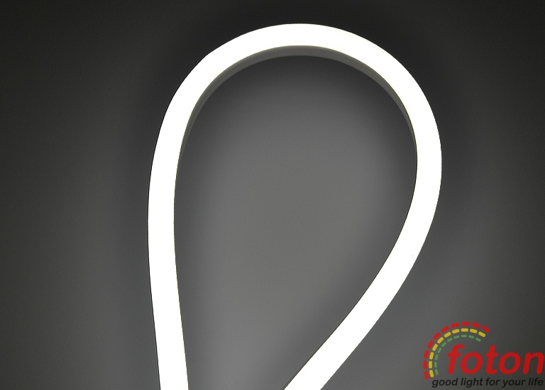 Гнучкий світлодіодний неон на світлодіодах SMD 2835 у кількості 120 штук на метр, має захист від вологи та пилу. Робоча напруга становить 220В. Колір свічення: білий холодний (6000К).