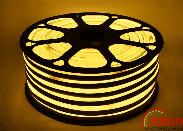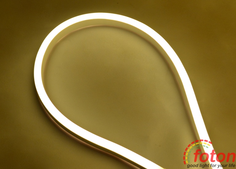 Гнучкий світлодіодний неон на світлодіодах SMD 2835 у кількості 120 штук на метр, має захист від вологи та пилу. Робоча напруга становить 220В. Колір свічення: білий теплий (3000К).