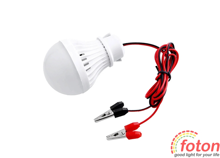 Світлодіодна лампа LED Lamp 12В 7Вт Portable Bulb має світловий потік 700 Лм. Для підключення даної Lamp 12В Portable 7W знадобиться джерело живлення 12В. Led лампу можна підключити від будь-якого пристрою, який видає 12 Вольт.Світлодіодна лампа має пластиковий корпус із кріпленням та кабелем живлення довжиною 1 метр.Світлодіодна LED лампочка 7Вт відмінно підійде для кемпінгу та для автономного підсвічування.