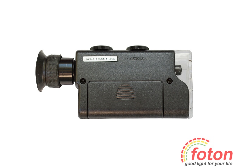 - Кратність збільшення 200x-240x, ручне фокусування;
