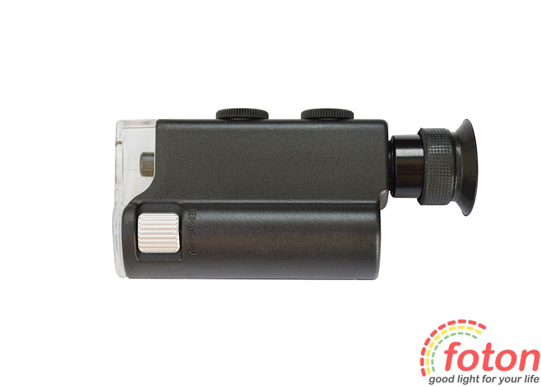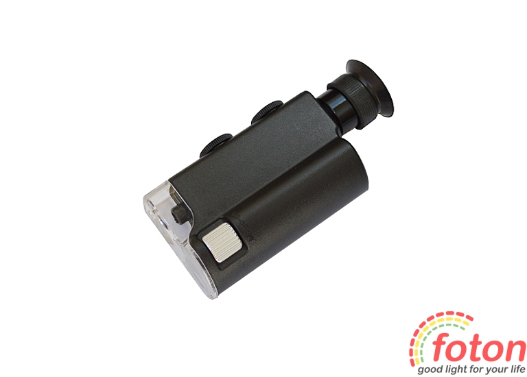 Мікроскоп 60х з білим світлодіодним та ультрафіолетовим підсвічуванням для перевірки справжності. Яскраве світлодіодне біле підсвічування збільшувального скла дає достатньо світла навіть в умовах слабкого освітлення. УФ підсвічування ідеально підходить для ювелірних виробів, монет, марок, антикваріату і т.д.