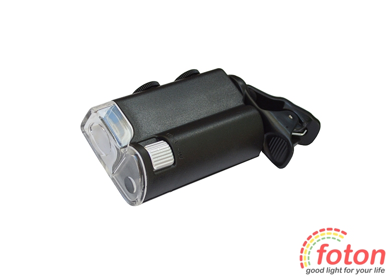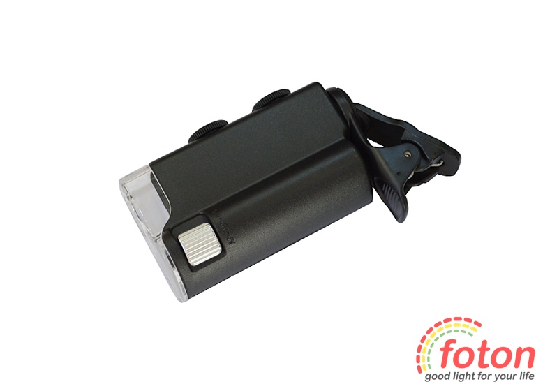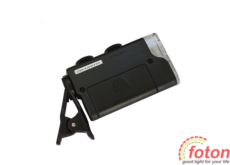Мікроскоп 60x-100x з прищіпкою є компактним механізмом з функцією фіксації на корпусі смартфона, що забезпечує виведення зображення з мікроскопа на екран електронного пристрою.