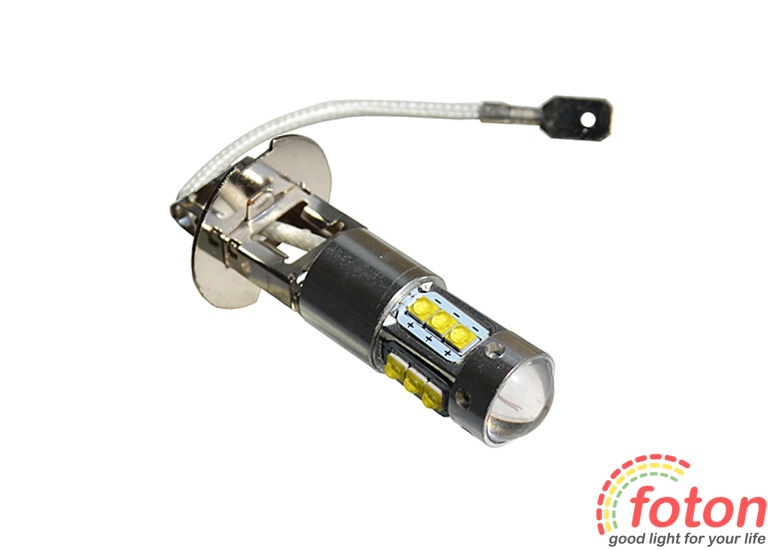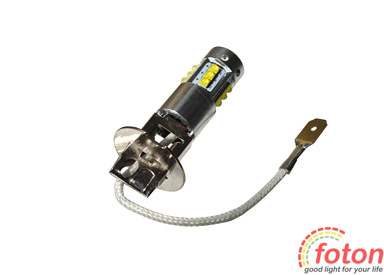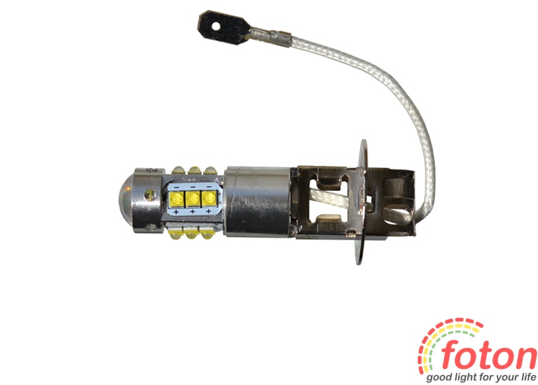 Світлодіодна автолампа H3, 80W призначена для заміни галогенних ламп у протитуманних фарах та фарах ближнього світла. Робоча напруга 12 ст. 16 світлодіодів SMD 2323. Може використовуватися як денний ходовий вогнів.