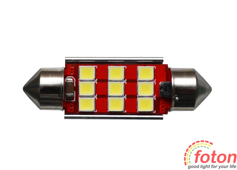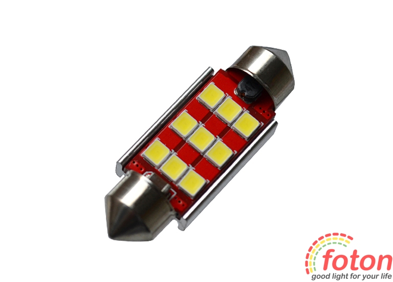 Світлодіодна автолампа T10, 36mm, 9pcs 2835 призначена для заміни штатних ламп освітлення салону. Застосовується для цоколів C5W/C10W. Робоча напруга 12 Ст.