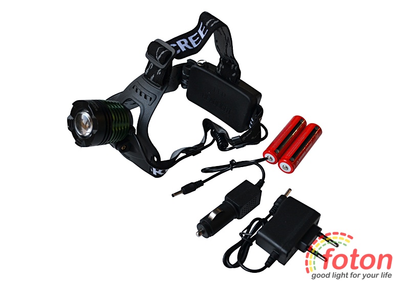 Налобний світлодіодний ліхтар має окремий виносний акумуляторний блок який здатний розмістити два акумулятори типорозміру 18650. Для забезпечення тривалого свічення 2500 мА до 4000 мА. Заряд акумуляторів можна виконувати за допомогою зарядного пристрою від мережі 220В або автомобільного прикурювача через роз'єм Power jack 3,5 мм.