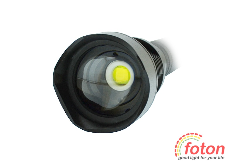 Надяскравий світлодіодний ліхтар XHP70 оснащений надяскравим світлодіодом Cree XHP70.2. Якісний анодований металевий корпус виконує захисну функцію. Також масивна голова ліхтаря виконує функції радіатора для виведення теплової маси з потужного світлодіода. Плавне регулювання світлового променя здійснюється за допомогою рухомої головної частини ліхтаря. Цей ліхтар має 3 режими роботи (100%, 50%, strobe). Немає пам'яті останнього режиму.