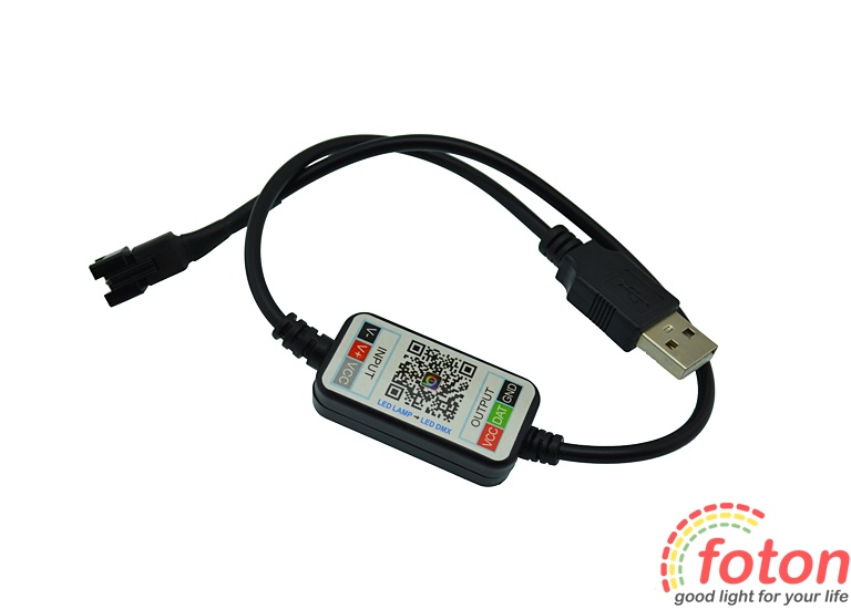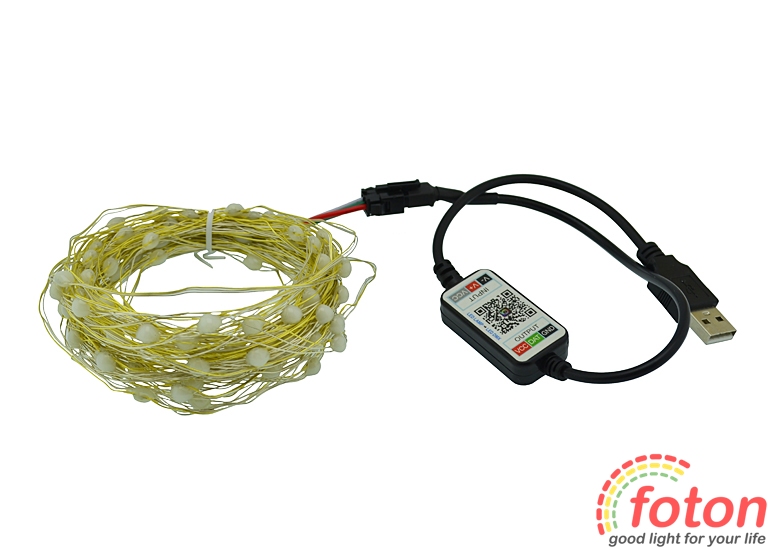 Керування цією гірляндою здійснюється за допомогою Bluetooth через будь-який електронний пристрій (смартфон, планшет, ноутбук), що підтримує цю функцію. Щоб встановити програму, достатньо сканувати QR код із блоку управління гірляндою. За промовчанням завантажиться програма "LED LAMP", крім цього можна використовувати й інші подібні програми. Підключити гірлянду можна через USB роз'єм у зарядний пристрій 5В, або до ноутбука, комп'ютера, ліхтарика, пристрою power bank та інших джерел живлення оснащеним USB роз'ємом з вихідною напругою 5В.